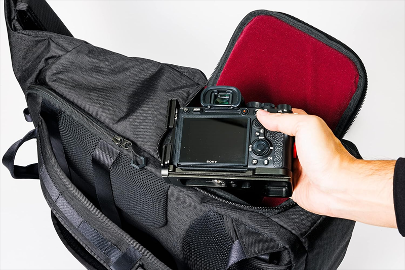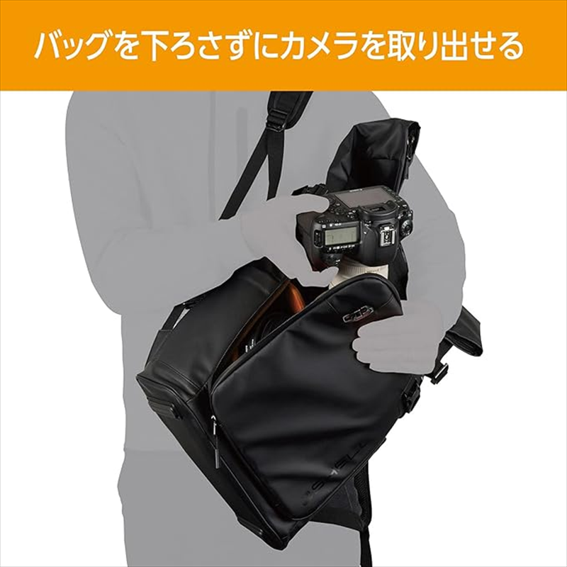 どちらのバッグも、肩に掛けたままカメラを取り出すことができます。