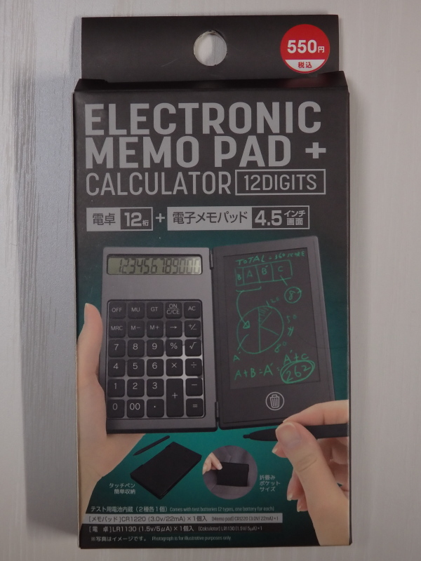 今回、ダイソーさんで販売されている『電卓付き電子メモパッド』を購入してみました。