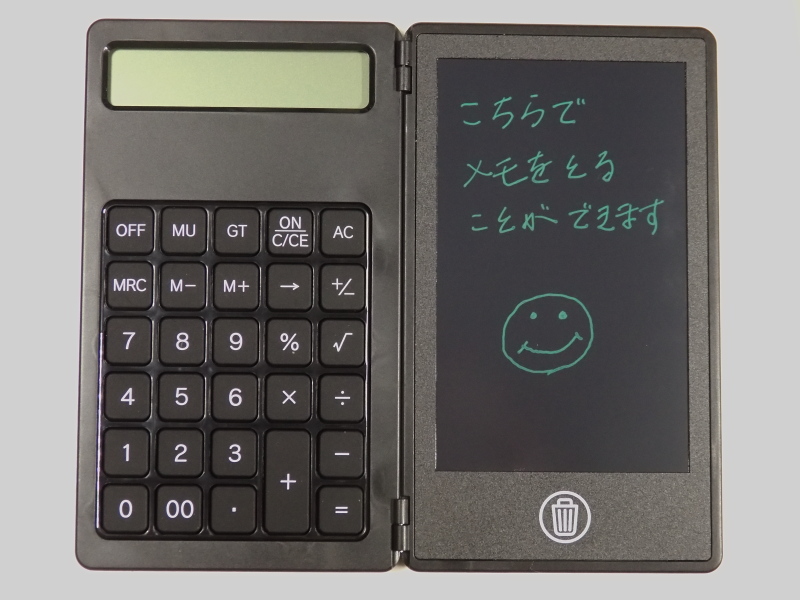 電卓:12桁(メモリー機能付き)+電子メモパッド (4.5インチ画面)